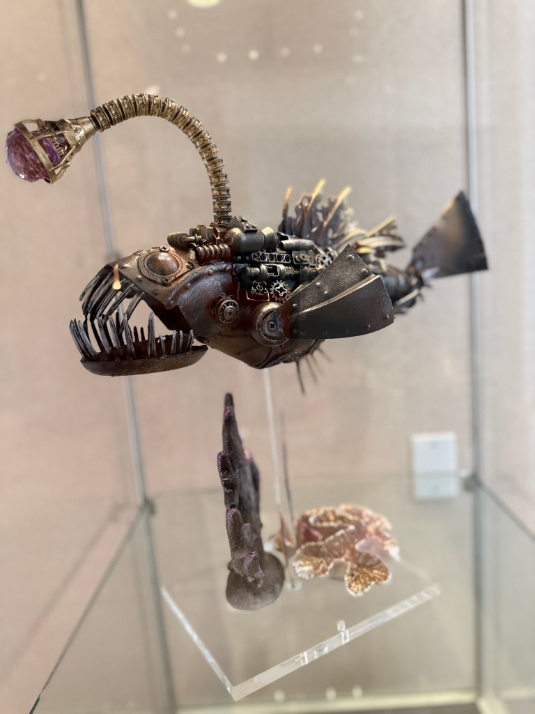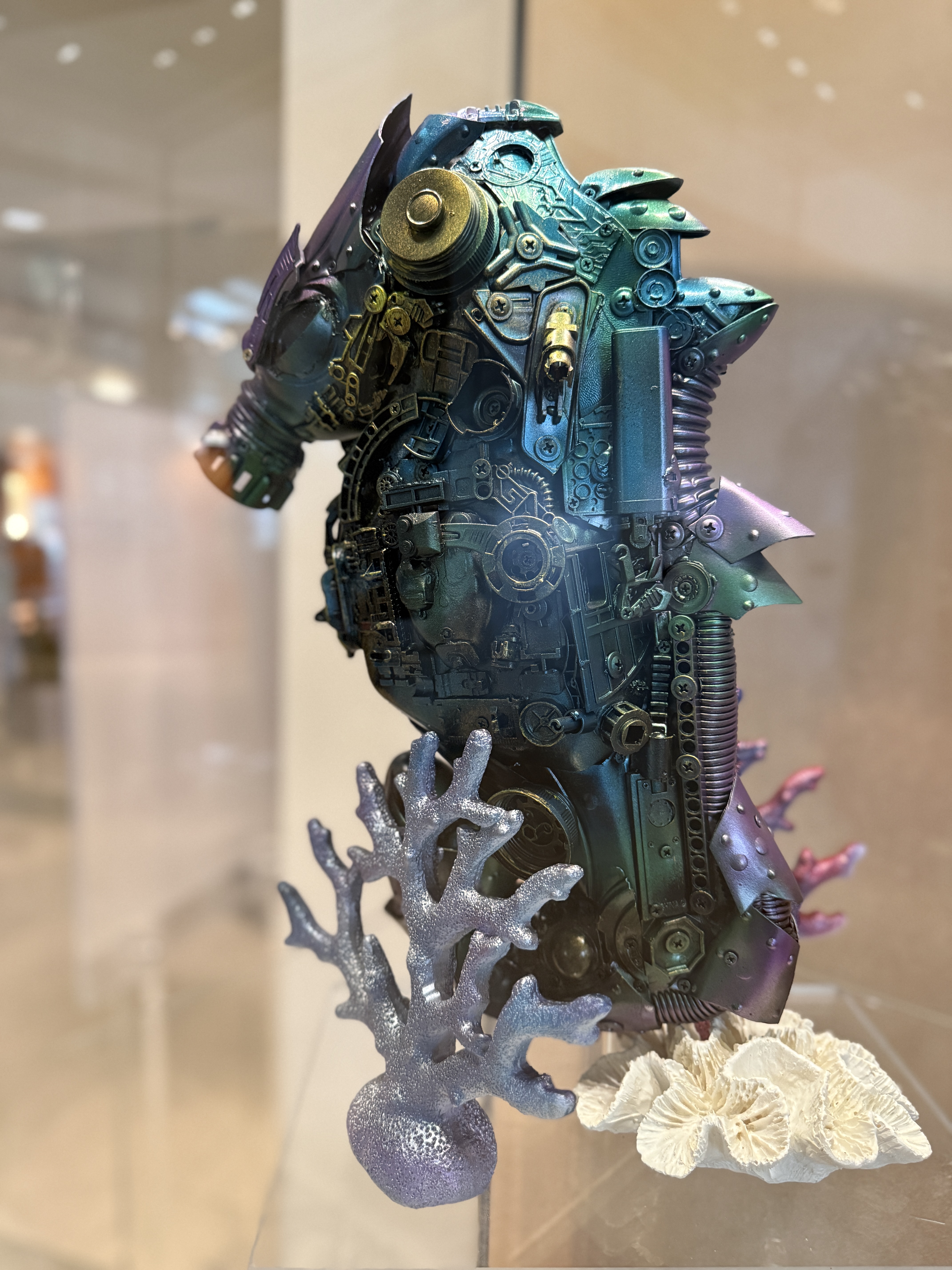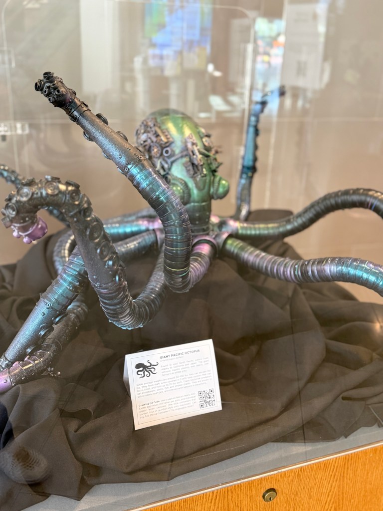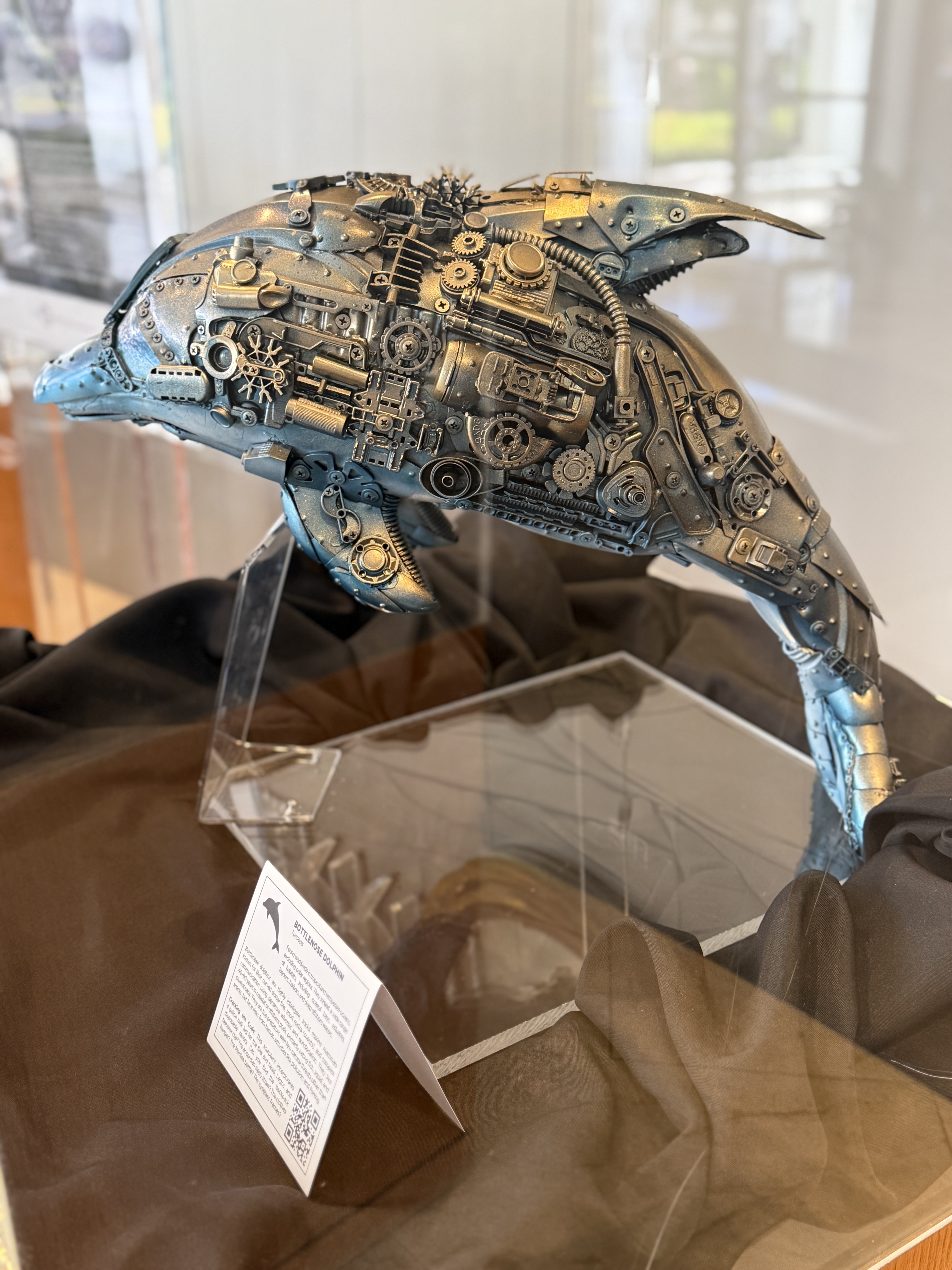 The collection features an array of marine life meant to serve as a Conversation Starter… the topic: “SAVE OCEANS + SEAS” or “S.O.S.” Each work of art is meticulously designed and crafted using an array of discarded materials washing into our vast oceans and waterways. As we pollute the planet, our defenseless neighbors absorb the trash as it breaks down in the form of microplastics and indigestible debris.